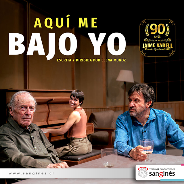 Desde el 3 de Octubre estaremos celebrando con su mas reciente obra “Aquí me bajo yo”, una obra que con humor, nostalgia y ternura cuenta la historia de un abuelo que estuvo a punto de morir, de su hijo que viene a visitarlo desde Alemania y de su nieta que lo cuida. Los tres se reencuentran en la antigua casa familiar para compartir recuerdos que los unieron y también los llevaron a separarse. La cotidianidad y simpleza con que está escrito y representado el texto, provocan gran identificación en el público el que se siente reflejado por temas universales y a la vez comunes y corrientes.